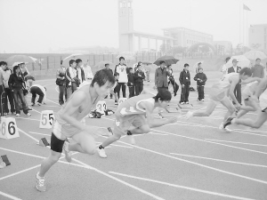 記者在現(xiàn)場(chǎng)看到,開幕式上中小學(xué)生穿著夏日服裝載歌載舞,在瀝瀝的秋雨下凍得嘴唇發(fā)烏,田徑賽場(chǎng)上的學(xué)生們僅穿著背心、短褲,個(gè)個(gè)被淋成落湯雞,下場(chǎng)后渾身凍得瑟瑟發(fā)抖。老師們則撐著雨傘為參賽學(xué)生吶喊鼓勁。