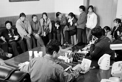 從昨天早上8時(shí)到下午5時(shí)30分時(shí),職工們一直圍坐在馬院長(zhǎng)辦公室里,沙發(fā)、凳子不夠坐,一些人干脆蹲在辦公室門外!盁o法辦公,不得離開,也不能出去吃飯!瘪R金玉說。