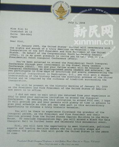 新民網(wǎng)29日致電該女生所在的成都市實驗外國語學校,分管德育工作的副校長李俊說,該校高一女生李紫子獲邀參加奧巴馬就職典禮確有其事,但發(fā)出邀請函的單位并不是美國國會,而是國會下屬的一個名為“全球青少年領袖論壇”(the Congressional Youth Leadership Council)的青少年組織。去年8月,李紫子因參加了該組織舉辦的比賽并表現(xiàn)出色,因此才會收到邀請函。