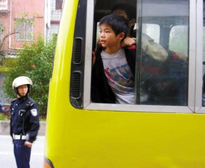接近8時(shí),進(jìn)入查車點(diǎn)的校車又鮮見超載,是不是這些校車守規(guī)矩了?記者離開查車點(diǎn),果然發(fā)現(xiàn)了問題:原來,在查車點(diǎn)前一個(gè)路口,一些接到風(fēng)聲的校車提前偷偷摸摸放人,讓學(xué)生步行一段時(shí)間,等到躲開了交警的眼睛,校車又接上學(xué)生,繼續(xù)上路———顯然是有人“通風(fēng)報(bào)信”!