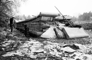 此時(shí),石舫周圍約兩米寬的地方已經(jīng)被草垛圍擋,約60厘米寬的草垛上工人正在檢查施工情況,草垛內(nèi)工人們正在清淤。據(jù)現(xiàn)場(chǎng)施工的張師傅介紹,目前已清淤高度約1米。 “我們是大年初三時(shí)發(fā)現(xiàn)石舫一側(cè)坍塌的,約十天前,我們開始圍堵并排水、清淤。”據(jù)了解,在盛夏漲水時(shí)石舫只有約十厘米露在水面外!皬默F(xiàn)在挖的高度來看起碼有1.7米左右長(zhǎng)期浸泡在水里。”張師傅說,“另外,石頭年久失修一定會(huì)造成一定松動(dòng)!