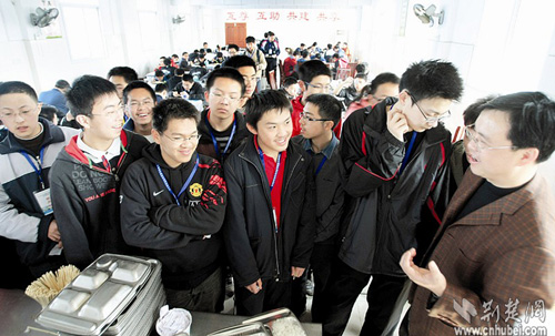 這些學生代表著中國中學生數(shù)學最高水平,他們將在武鋼三中進行為期18天的集訓(xùn)和考試,最后6名勝出者將進入國家隊,代表中國參加今年7月在德國舉行的第50屆國際數(shù)學奧林匹克競賽。