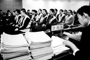 昨天8時50分,押送著黃偉、操雙全等13名犯罪分子的3輛警車陸續(xù)抵達海淀法院。 整個庭審持續(xù)了近2個小時,擺在公訴人面前的,是兩大摞犯罪嫌疑人的證據(jù)材料。記者數(shù)了數(shù),本案的起訴書就有25頁之多。在大量證據(jù)面前,所有犯罪嫌疑人均選擇認罪。