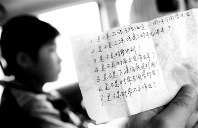 “下課瘋逗打鬧、經(jīng)常不完成作業(yè)……”記者在這張紙條上看到,甘天橋共羅列了李怡杰的七大調(diào)皮表現(xiàn)。王望霞說,這些問題孩子確實存在。但孩子犯錯,老師可批評教育,無權(quán)不讓孩子上學(xué)。