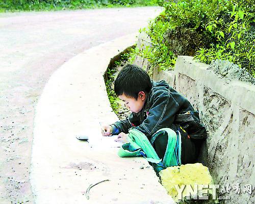 一條蜿蜒崎嶇的鄉(xiāng)村公路邊,一名小男孩佝僂著身體,趴在水泥公路路沿上奮筆寫(xiě)著作業(yè)。即便有車輛經(jīng)過(guò),他也不為所動(dòng),眉宇間透出的認(rèn)真勁,讓人無(wú)不為之動(dòng)容并心生別樣情愫。這是網(wǎng)友“情緣”3月26日在云陽(yáng)縣清水鄉(xiāng)一條鄉(xiāng)村公路拍到的動(dòng)人一幕。帖子發(fā)到網(wǎng)上,引起了網(wǎng)友對(duì)這名小男孩的生存狀況的關(guān)注。