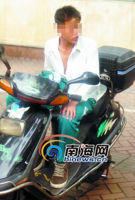 一學(xué)生騎著摩托車等同學(xué)。南國都市報記者李小崗 攝