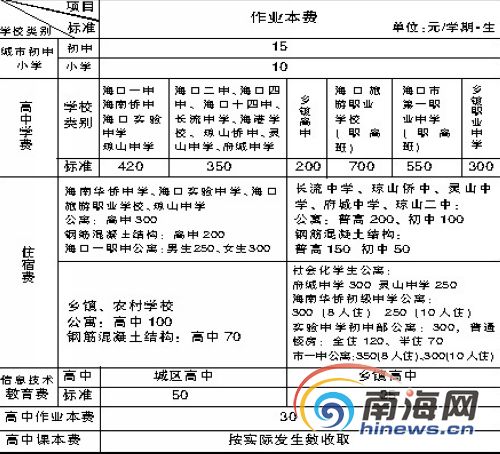 通知要求:高中和職業(yè)學(xué)校的學(xué)費、住宿費、假期補課費按瓊價費字[1999]235號文規(guī)定執(zhí)行。已交擇校費的學(xué)生免交學(xué)費。高中和職業(yè)學(xué)校課本費根據(jù)有關(guān)文件規(guī)定,按實際發(fā)生的收費,及時結(jié)算,多還少補,不得盈利。