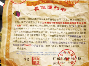 一直以來(lái),成績(jī)不錯(cuò)的徐洋都是父母的驕傲,剛剛放暑假,想到下學(xué)期就要初三了,徐洋決定在家里看看書(shū)。前兩天,小區(qū)的門(mén)衛(wèi)突然打電話來(lái)說(shuō)他有份錄取通知書(shū)剛剛寄到,讓他去取。等拿到錄取通知書(shū)后,徐洋懵了,通知書(shū)是由廣東東南科技學(xué)校寄出的,上面赫然寫(xiě)著,“現(xiàn)正式錄取你為本校三年制電子技術(shù)與計(jì)算機(jī)科學(xué)應(yīng)用專業(yè)大專(正取)新生”。