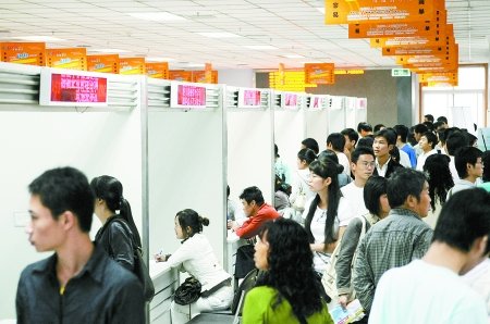 在鄭州市人才大廈,由鄭州市人事局舉辦的2008年大中專畢業(yè)生首場專場招聘會如期舉行,近150家招聘單位前來納賢。