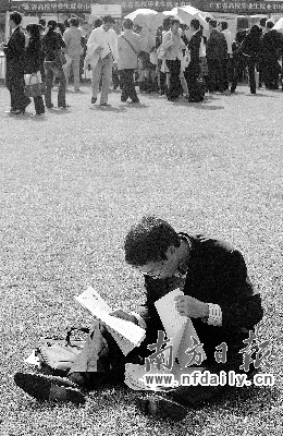 中山大學西方經濟學專業(yè)的陳同學對記者說:“兩年畢業(yè)本來就容易被認為沒有學到什么東西,又碰上金融危機,現在工作只能盡量找了!钡腿ツ晗啾,昨日的研究生專場熱度稍有減少。一些研究生表示,在這場招聘會前,已有一些人通過多種途徑找到了工作。據了解,研究生一般開出的心理價位是5000元左右。