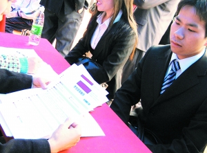 昨日一大早就下起了雨,校園里彌漫著濃濃霧氣,但招聘會場上播放著舒緩的輕音樂,給求職者帶來一絲寧靜。記者了解到,昨日共200多家用人單位提供2500多個職位吸引了15000名畢業(yè)生進場應聘。