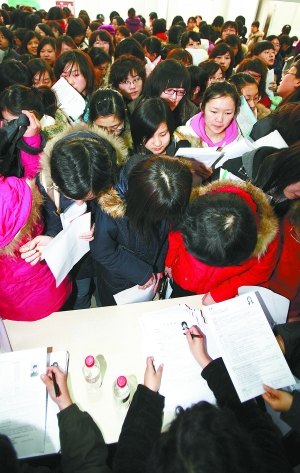 市人事局新聞發(fā)言人張祖德介紹,用人單位對研究生、本科、專科學歷的要求分別可達42.6%、44.3%和13.1%。今年北京生源將達到9萬人,其中碩士研究生以上學歷的不到1萬人、本科畢業(yè)生有4.4萬人、專科畢業(yè)生人數(shù)有3.8萬。目前來看,就業(yè)形勢比較嚴峻的主要是?飘厴I(yè)生。自上月以來已經舉行了 150場針對應屆畢業(yè)生的專場招聘會,所提供的8萬余個崗位中已有四分之一達成意向。 RB156