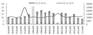上海10月以后每周銷售面積相比高峰時期下降較少,基本維持在日均800套的平均水平,成交價格有所下滑,從最高時期的每平方米1萬多元下降到近期的8000多元。北京10月以后一手房住宅繼續(xù)保持每周3000套以上的銷售旺盛態(tài)勢,成交面積40萬平方米左右,房價穩(wěn)中有升。