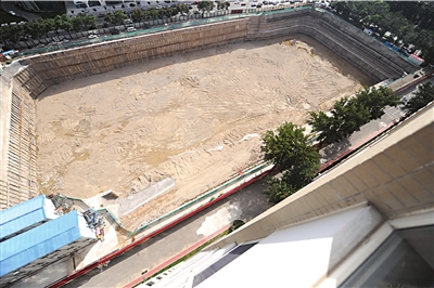 出于對安全隱患的擔憂,世貿(mào)國際公寓的業(yè)主通過各種渠道向相關部門反映問題!霸镜臓尾樓有水泥地基加固,坑面積也不大。我們都相安無事,F(xiàn)在他們越挖越大,坑面積大了3倍,往我們小區(qū)方向推進了8米,也挖深了不少,嚴重威脅小區(qū)樓體的安全。”業(yè)主何先生等人對該工程施工的合理性表示質(zhì)疑。