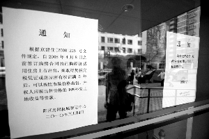 貼在玻璃門(mén)上的通知說(shuō):“根據(jù)京建住(2008)225號(hào)文件規(guī)定,自2008年4月8日之前簽訂購(gòu)房合同的已購(gòu)經(jīng)濟(jì)適用住房上市出售,須取得契稅完稅憑證或房屋所有權(quán)證滿(mǎn)5年后,可以按照市場(chǎng)價(jià)格出售,產(chǎn)權(quán)人應(yīng)按出售價(jià)格的10%補(bǔ)交土地收益等稅款!