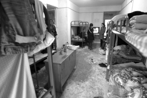 昨天中午,記者來到楊女士所住的小區(qū):江北金源路工商大學(xué)集資樓內(nèi)。在四單元9樓6號房,記者敲開了住滿28人的房門,頓時一陣熱氣夾雜著汗味撲面而來,一位小伙子正坐在一張雜亂的床鋪上玩著電腦,他告訴記者,住在里面的人都是附近一家酒樓的員工。