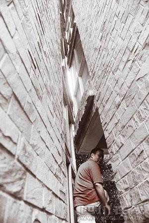 小區(qū)7棟與6棟之間有一個(gè)“V”字型的縫隙。經(jīng)記者測量,兩棟樓最寬間距3.4米,越朝里靠得越近,在房子未出現(xiàn)問題之前,最窄處有幾厘米的距離,而如今,卻是6棟的墻體壓在了7棟上,連塑鋼窗都打不開,抬頭往上看時(shí),從1樓到6樓,兩棟樓緊緊地貼在了一起。
