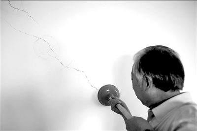 “這墻都裂透了,”楊先生說,家里的承重墻幾乎都有裂縫,而且逐年變寬!安皇怯小畼峭嵬帷畨Υ啻唷瘑,我們家這就是‘墻裂裂’!彼猿暗卣f。