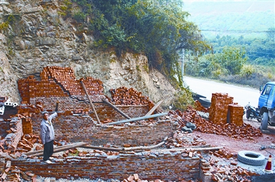 此后雖有干擾,唐家仍開挖地基。到2008年,8米多高的山腳終于被他“掏”出一塊數(shù)百平方米的空地。當(dāng)年5月,新房墻體已建到1米高,紙坊城管所和村委會(huì)先后下通知說他建房違法,隨后紙坊街道辦事處將墻體強(qiáng)行拆除。