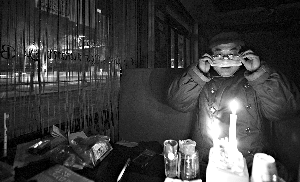由于停水停電無(wú)暖氣,陸大任只能去附近居民家借水,并用爐子燒蜂窩煤取暖。前日,蜂窩煤爐也被相關(guān)管理部門收走。陸大任現(xiàn)在24小時(shí)在店里,天冷,他就穿上厚厚的軍大衣和棉褲。