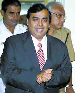 圖:身價(jià)430億美元、在福布斯榜上名列第5的印度富豪穆凱什·安巴尼。由其掌控的信實(shí)集團(tuán)把握著印度諸多經(jīng)濟(jì)領(lǐng)域的命脈,2002年時(shí)該財(cái)團(tuán)的總資產(chǎn)相當(dāng)于印度GDP的3.5%。圖片來源:北京晚報(bào)