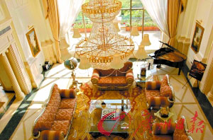 推開這座四層、總面積近2000平方米的意大利文藝復興時期風格別墅的雙面大門,奢華之氣撲面而來。這個近200平方米的客廳里靠近陽臺一側擺放著價格堪比頂級賽車的鋼琴,價值398萬元。