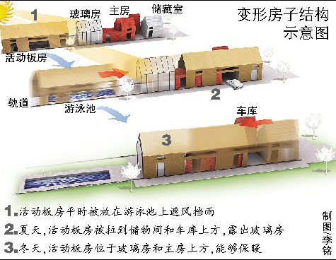 英國(guó)一男子造出了一座“變形”房,能夠滿足房主四季對(duì)采光、保暖的不同要求。