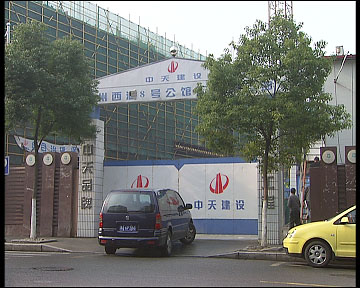 記者在杭州的調(diào)查時,找到了這個叫“西湖8號公館”的天價樓盤,記者在現(xiàn)場看到,一堵暗紅色的圍墻將整個樓盤圈了起來,而已經(jīng)封頂?shù)姆孔右脖徽趽醯膰绹缹崒。記者在旁邊一個小區(qū)的商住樓下,找到了西湖8號公館的接待中心,在這里記者發(fā)現(xiàn),除了西湖8號公館幾個不大顯眼文字外,很難想象這里就是天價樓盤的售樓處。