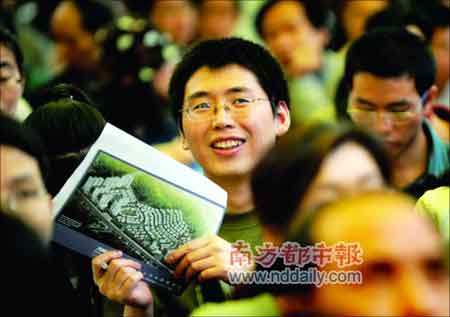 昨天上午,開發(fā)區(qū)萬(wàn)科新里程樓盤門前人頭攢動(dòng),車龍由開創(chuàng)大道延伸至廣汕路,場(chǎng)面熱鬧非常。在銷售中心門外,開發(fā)商搭建了巨大的涼棚,擺設(shè)了3000多把坐椅,供通過(guò)審核的1400多戶申購(gòu)家庭等候選房。此次,新里程首批共推出541套限價(jià)房。