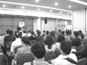 拍賣師萬華介紹,今年拍賣會的火熱與去年的冷清場面形成鮮明對比。在去年樓市低迷時期,拍賣現場常常只零散地坐著10多個競買人,經常有房產因參與競拍人數不足兩人而流拍,只有進行多次調價多次拍賣,還有許多房產無人競價而以底價成交,即使有人競買也是寥寥數人。到拍賣后半場,由于有人提前離場,稀稀拉拉的幾個人,也再沒舉牌熱情。