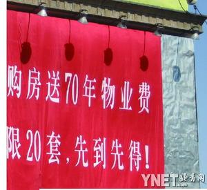 “終身免物業(yè)費(fèi)”、“購(gòu)房送70年物業(yè)費(fèi)”,在今春一派樓市回暖的景象中,北京許多樓盤(pán)相繼推出新的促銷(xiāo)熱賣(mài)舉措。近日,京城多家房產(chǎn)網(wǎng)站上,都出現(xiàn)了部分樓盤(pán)購(gòu)房全免物業(yè)費(fèi)的消息,一時(shí)成為購(gòu)房者和業(yè)內(nèi)人士關(guān)注的話題。