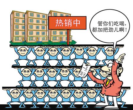 在北京市朝陽區(qū)東八里莊的一個居委會里,張大媽近日又開始忙起來了,同往年一樣,她又接受了東四環(huán)幾個待銷樓盤的邀約,組織一批老年人到幾個售樓中心“簽約”,一天管吃喝還凈掙50元。據(jù)介紹,他們有時(shí)還要到國貿(mào)春季房展會上演“訂房”,前臺簽單,后臺拿錢走人。(4月6日《人民日報(bào)》)