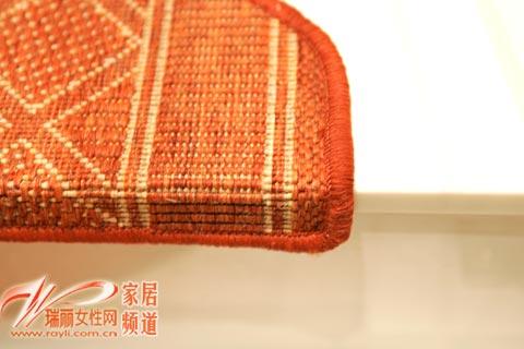 3、把樓梯踏毯放在樓梯踏板確定好的安裝位置,用手固定住踏毯的前方,撕去PVC龍骨部位的膠帶,然后粘貼在樓梯踏板上,用橡皮錘或用手壓緊膠帶與梯面接觸的部位;