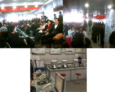 為了了解過戶的實際情況,記者采用了隱蔽拍攝的方式。在朝陽區(qū)房產(chǎn)交易中心記者看到,整個大廳到處都是排隊等待過戶和辦證的購房者。幾排座椅已經(jīng)坐滿了人,過道上和各個窗口都擠滿了人。有的人從早上5點就起來排號,在長時間的等待中,甚至都睡著了。由于怕錯過號,有的人到了吃飯時就隨便買點盒飯打發(fā),記者了解到,最近幾周來,這里都是人山人海。
