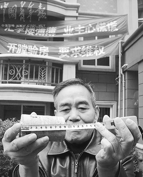 “結(jié)果出來就是沒有一個洞是合格的,當(dāng)我們拿著這個跟開發(fā)商說的時候,他們還說樓是合格的,這只不過是瑕疵而已!毙旖ㄅd說。