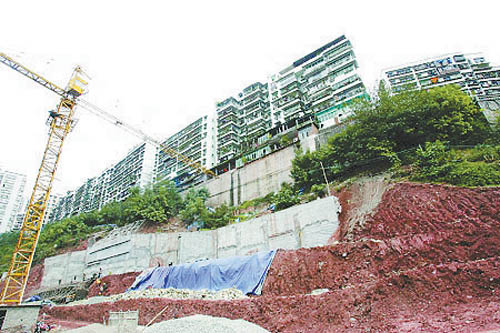 一年前,施工隊(duì)陸陸續(xù)續(xù)地來(lái)到這里,將這里的常青樹(shù)一一砍倒。接著,施工隊(duì)開(kāi)來(lái)推土機(jī),鏟平了小土坡。他們用了一天的時(shí)間,就在這里搭起了一整片工棚。居民們聽(tīng)說(shuō),這里將建起一幢高達(dá)16層的樓房,一個(gè)叫重慶市運(yùn)發(fā)房地產(chǎn)開(kāi)發(fā)有限公司的單位則是樓盤的承建者。