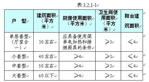 2.2.1 公共租賃住房戶(hù)型設(shè)計(jì)面積標(biāo)準(zhǔn)如下表3.2.1-1