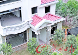 養(yǎng)雞豪宅有3棟是毛坯房,一男子在旁邊放雞。昨日,記者調(diào)查證實(shí),網(wǎng)絡(luò)熱傳的《價(jià)值千萬(wàn)豪華別墅養(yǎng)雞!》中的別墅就在廣州番禺迎賓路某大型小區(qū)。鄰居說(shuō),4座別墅價(jià)值兩三千萬(wàn)元,居然養(yǎng)了大批雞,不僅令大家睡不好覺(jué),而且擔(dān)心發(fā)生禽流感。(3月1日《廣州日?qǐng)?bào)》)