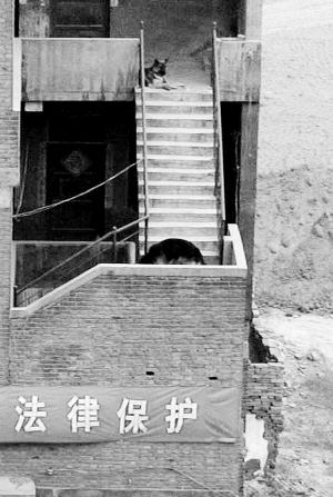 郭長喜說,自己家本來養(yǎng)的有一條狗,但看到周圍鄰居拆遷遇到的問題,就花錢買了兩條牧羊犬。從此,三只狗天天為這個家站崗放哨。記者采訪過程中,一只牧羊犬一直臥在露天樓梯上,目光炯炯的望著四周。