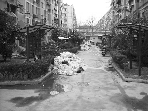 “現(xiàn)在最大的問題是保潔和保安!毙^(qū)業(yè)主委員會負責人傅先生說,寧工新寓是一個有著1000戶居民的大小區(qū),由于物管突然撤離,大量生活垃圾無人清掃清運,只得堆在樓前、綠地的空曠處,十多天下來,小區(qū)已是臟亂一片,“再這樣下去,肯定臭翻天!”