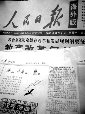 《人民日?qǐng)?bào)》海外版廣告部的工作人員告訴記者,海外版面向全世界80多個(gè)國(guó)家發(fā)行,城管部門(mén)刊登《強(qiáng)制拆除決定書(shū)送達(dá)公告》是第一次。(記者 王彬)