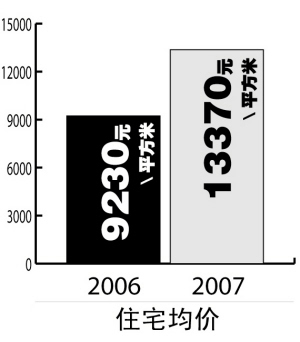 據(jù)統(tǒng)計(jì),2007年,全市90平方米以下的一手住宅銷售面積為162萬平方米,共25584套,均價(jià)11438元/m2,其面積占銷售總面積的32.33%,占總套數(shù)的50.56%;144平方米以上的“豪宅”銷售了117萬平方米,共5929套,均價(jià)21001元/m2,所占銷售面積比例為23.55%,占總套數(shù)的11.72%。