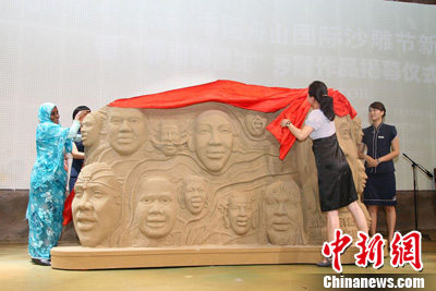 中新網(wǎng)上海8月31日電(見習記者 倪幼杰 通訊員 倪立剛)今天,上海世博會非洲聯(lián)合館再添一具“龐然大物”——“非洲的微笑”微縮版沙雕墻。據(jù)悉,該沙雕墻高1.5米,長為3米,所用沙子均來自非洲撒哈拉沙漠和中國舟山海灘。