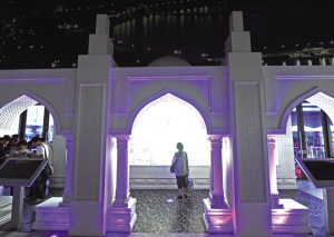 走進(jìn)展館,仿佛置身于首都巴庫(kù)的老城區(qū)——內(nèi)城。阿塞拜疆是人類(lèi)最古老的定居地之一,巴庫(kù)古城至今完整保留著修建于12世紀(jì)的汗王宮殿建筑,被稱(chēng)為“內(nèi)城”,擁有迷宮般的狹窄巷道,景致如畫(huà)。