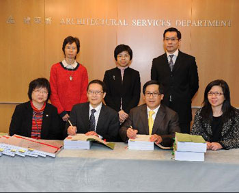 香港建筑署工程策劃總監(jiān)袁家達(dá)代表特區(qū)政府與金門建筑有限公司總裁何安誠簽署合約。合約包括設(shè)計和建造香港館、內(nèi)部裝修、展覽裝置、園境設(shè)計、保養(yǎng)維修及在上海世博結(jié)束后的拆卸工程。