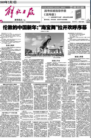 一個(gè)名叫戴維的上海女婿,在擔(dān)任英國上海商會(huì)副會(huì)長(zhǎng)的夫人嚴(yán)根琴的引領(lǐng)下,與一個(gè)在英國Sky公司擔(dān)任電影制片人的朋友,兩家6口人,幾乎全程參加了特拉法加廣場(chǎng)的慶;顒(dòng)。戴維說,倫敦的中國新年活動(dòng),豐富多彩,令人快樂,越來越演變?yōu)椤按蠹业墓?jié)日”!