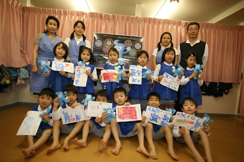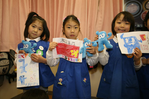 2月6日,日本東京大森青鳥幼兒園里一片沸騰,興奮的小朋友們歡呼雀躍。原來(lái),幼兒園的小朋友們里正在歡迎遠(yuǎn)道而來(lái)的小客人——中國(guó)2010年上海世博會(huì)吉祥物海寶。這些小海寶是2010年日本上海世博海外推進(jìn)室日本辦事處特意為日本小朋友們帶來(lái)的。