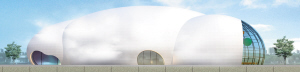 這個(gè)命名為“云中水滴”的展館外觀采用亮白色膜結(jié)構(gòu),形如云狀,膜布上均勻布滿噴霧點(diǎn)。當(dāng)噴霧全部開啟時(shí),整個(gè)展館宛若一朵漂浮在霧氣中若隱若現(xiàn)的白云。如果此時(shí)陽光高度角恰好小于42度,游客就可以在世博園區(qū)內(nèi)欣賞到“霧中彩虹”。