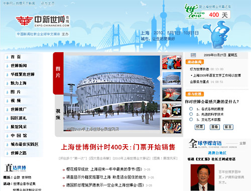 欣聞貴網(wǎng)將在世博會倒計時四百天之際(3月27日)開通“中新世博在線”,謹表示熱烈祝賀!