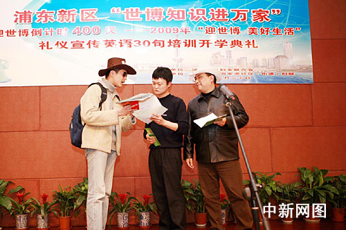日前,由上海市浦東新區(qū)婦女聯(lián)合會主辦、周家渡社區(qū)(街道)婦聯(lián)承辦的浦東新區(qū)“世博知識進萬家”迎世博倒計時400天——2009年“迎世博、美好生活禮儀宣傳英語30句培訓開學典禮活動”在周家渡社區(qū)文化中心開展。浦東新區(qū)的23個街、鎮(zhèn)婦聯(lián)參加活動。